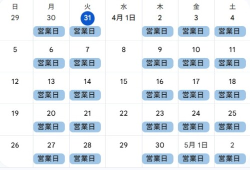 営業日のお知らせ